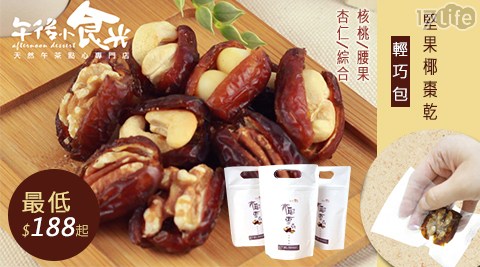 平均最低只要188元起(含運)即可享有【午後小食光】堅果椰棗乾輕巧包2包/4包/6包/8包/12包新款/16包(160g/包),口味:核桃/腰果/杏仁/綜合?